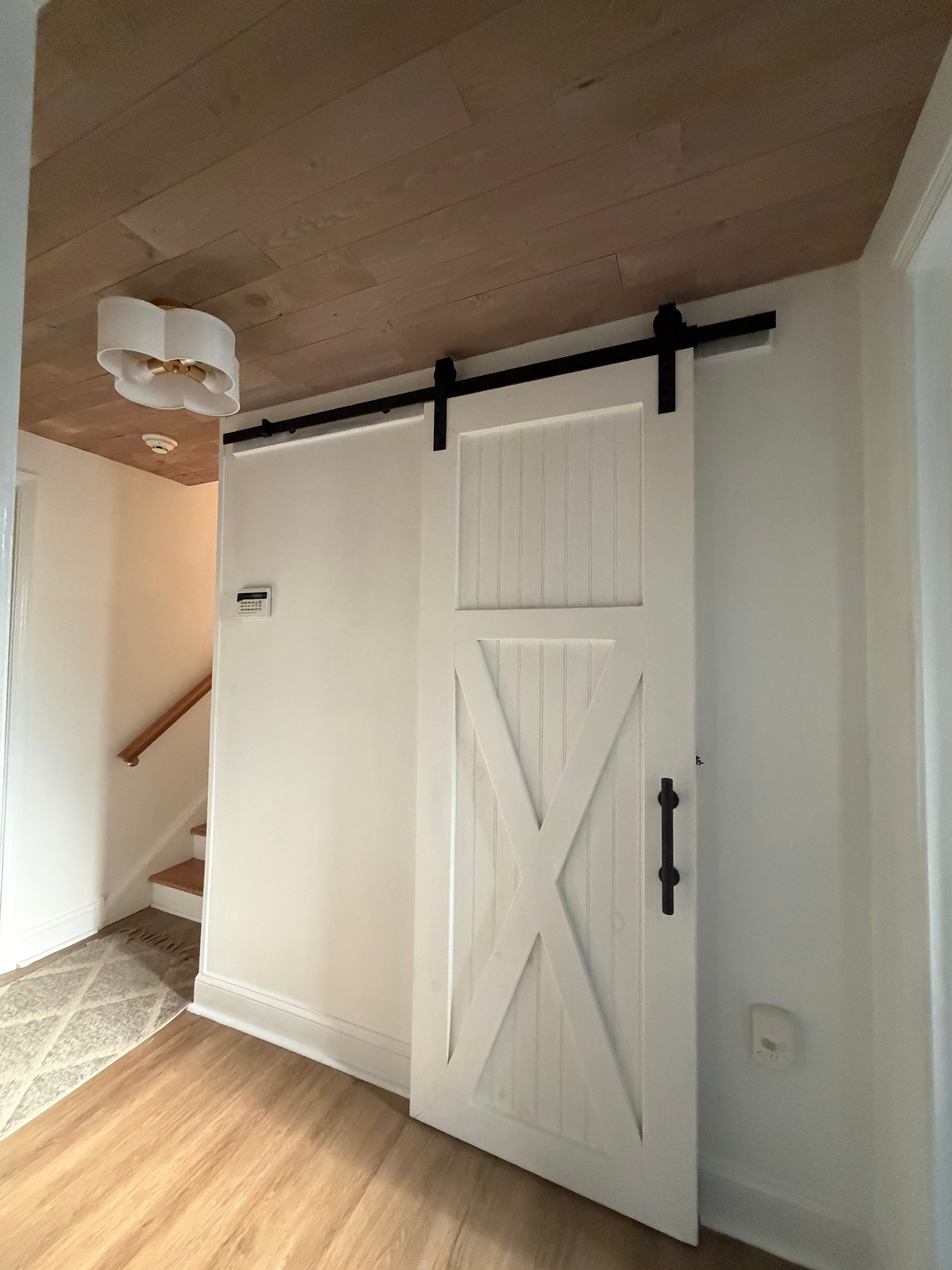 “Oh, it’s a dream,” she says. “Being the first ‘room’ you walk into when you step into our home, I feel like it is welcoming and for sure adds major visual texture! No one is going to walk into a house with white ceilings and say, ‘Wow, I love your ceiling!’ But with Stikwood? That’s the VERY first thing guests say!”