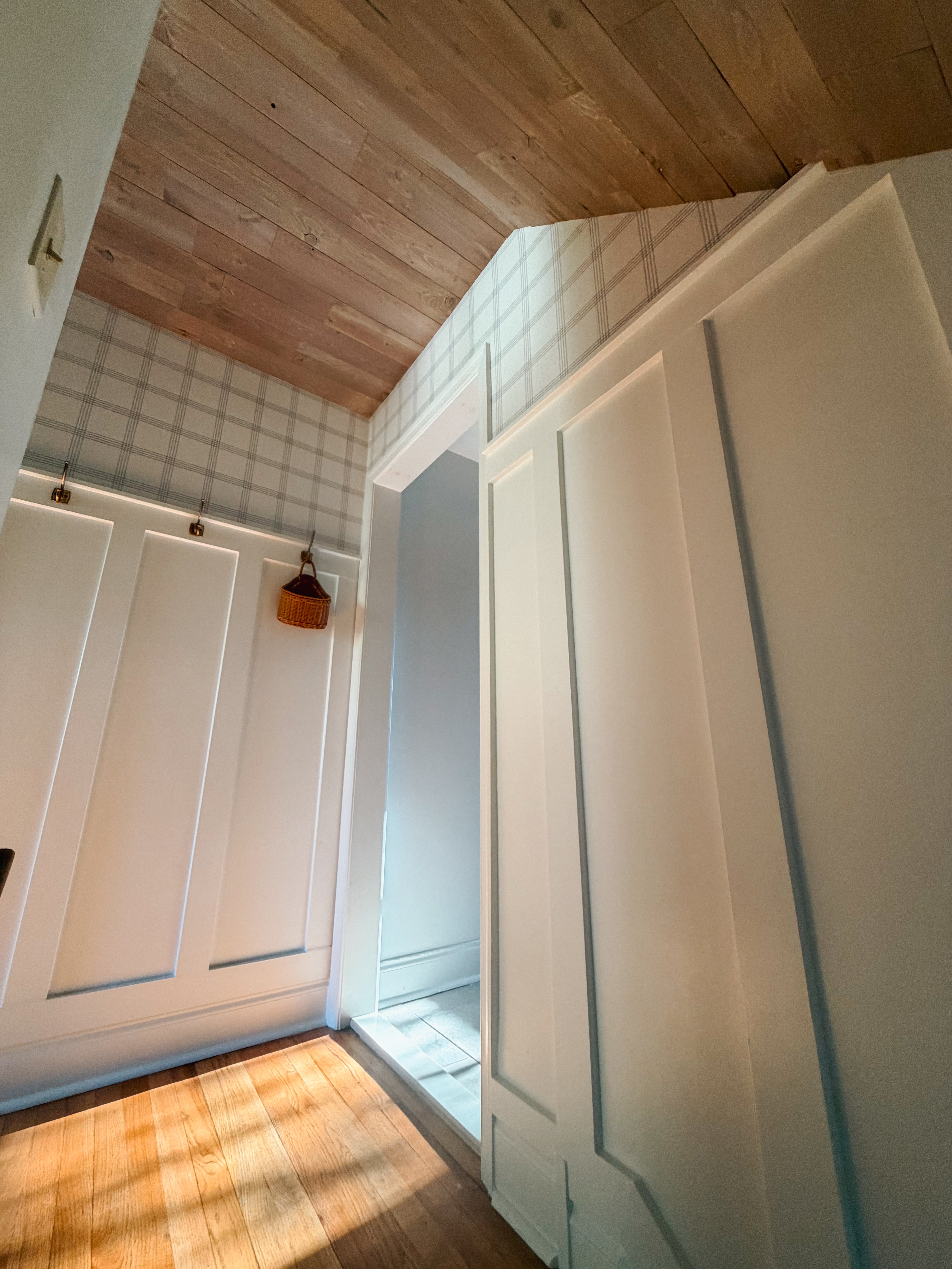 When lifestyle and DIY creator Brittany Scanlan set her sights on updating her entryway, she wasn’t looking for a typical transformation. Instead of turning to an accent wall, statement paint, or a rug swap, she looked up — literally. The Philly-suburbs mom of four turned her hallway ceiling into a showpiece using Stikwood peel-and-stick wood planks in the finish Sand Stone, and the result is nothing short of breathtaking.