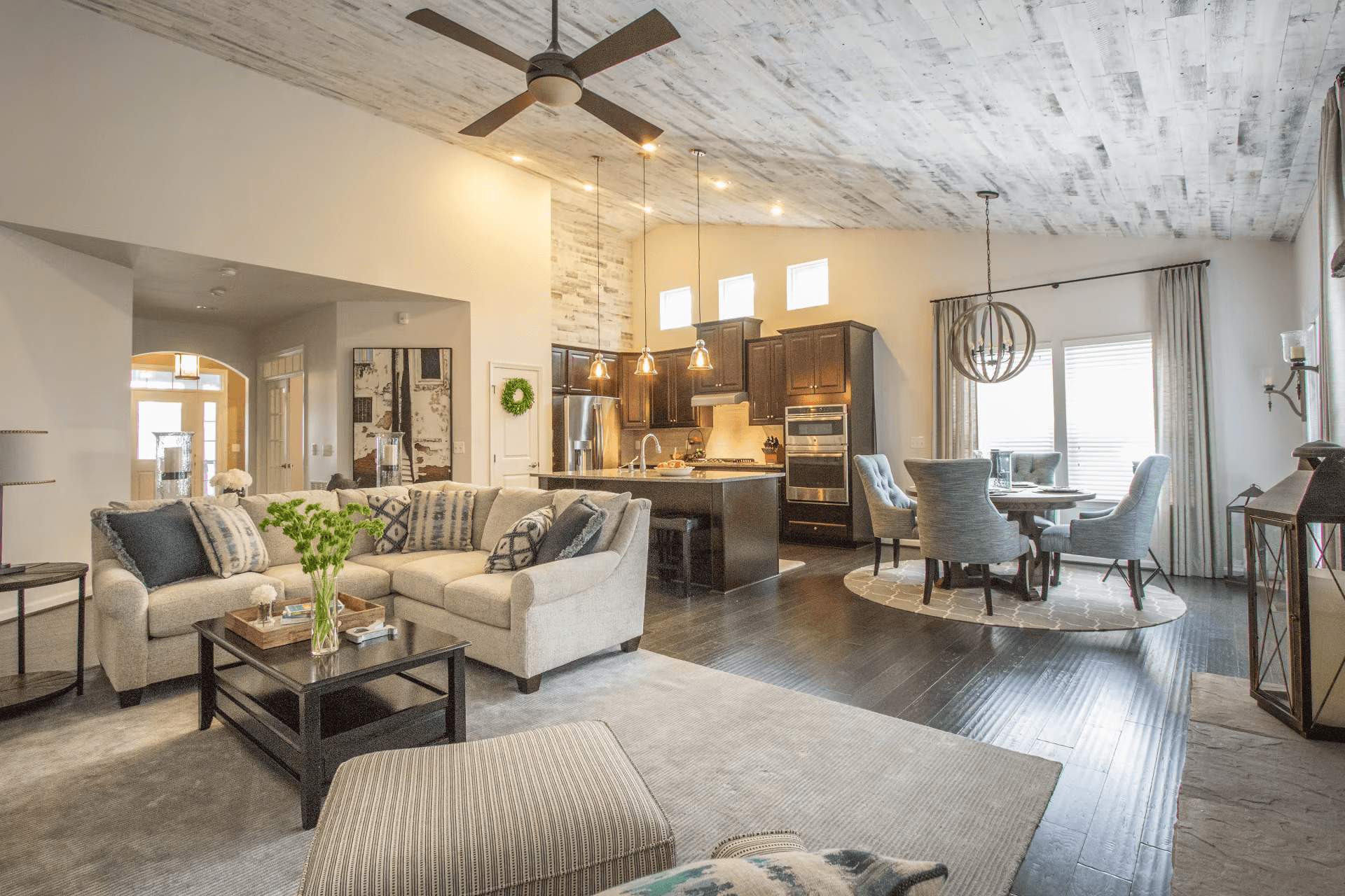 Even darker wood ceiling planks have their uses and can make the largest of rooms feel cozy and safe. Match the color with the mood, and you’re guaranteed to be satisfied with the result.