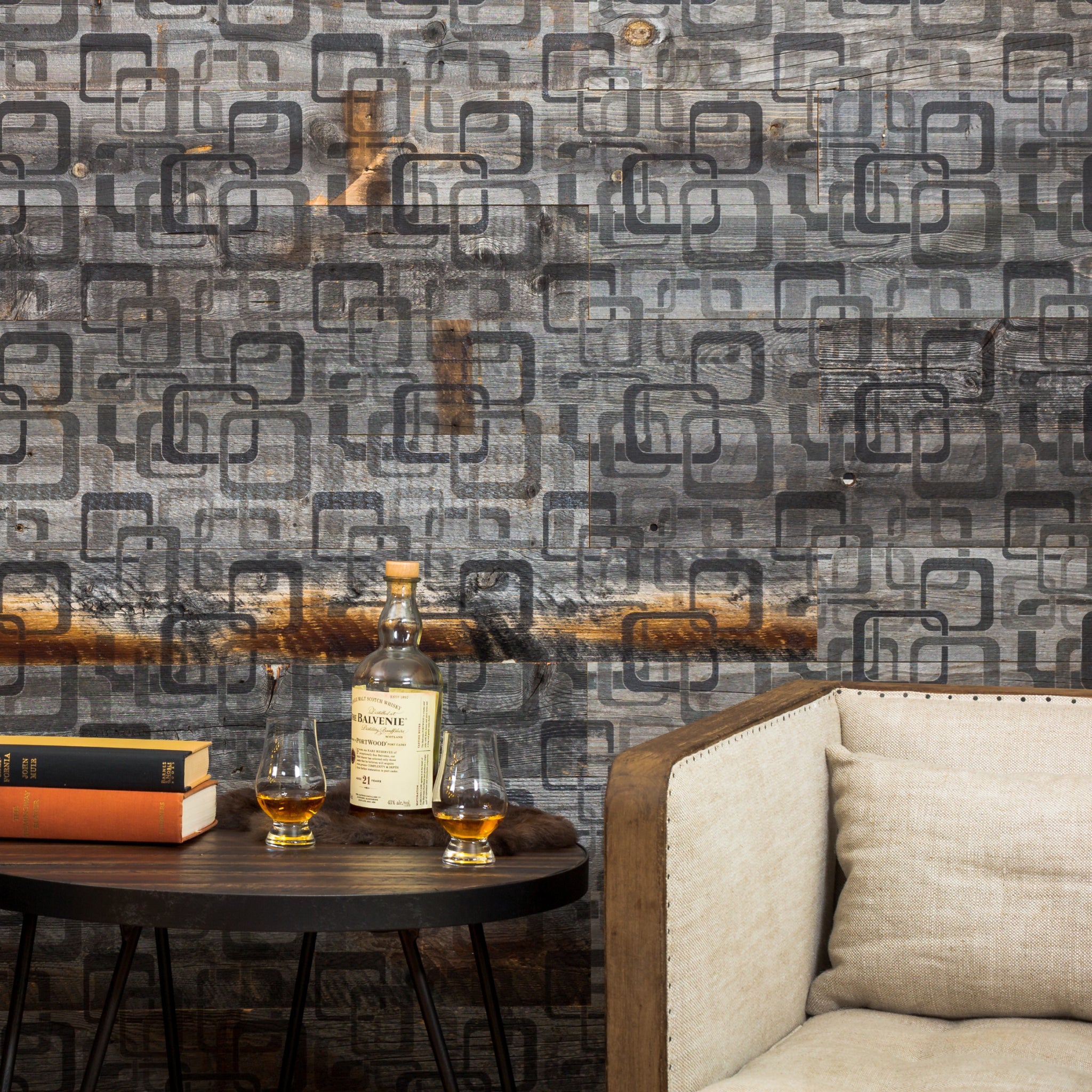 Experience the unique and quirky charm of Weathered Mod Squad Peel & Stick Wood Planks, expertly crafted from Real Reclaimed Pine that showcases nail holes, knots and other character marks. The rich, weathered wood beautifully complements the fun geometric pattern printed onto each plank. With easy-to-install peel and stick adhesive, these planks are perfect for one wall or an entire room.