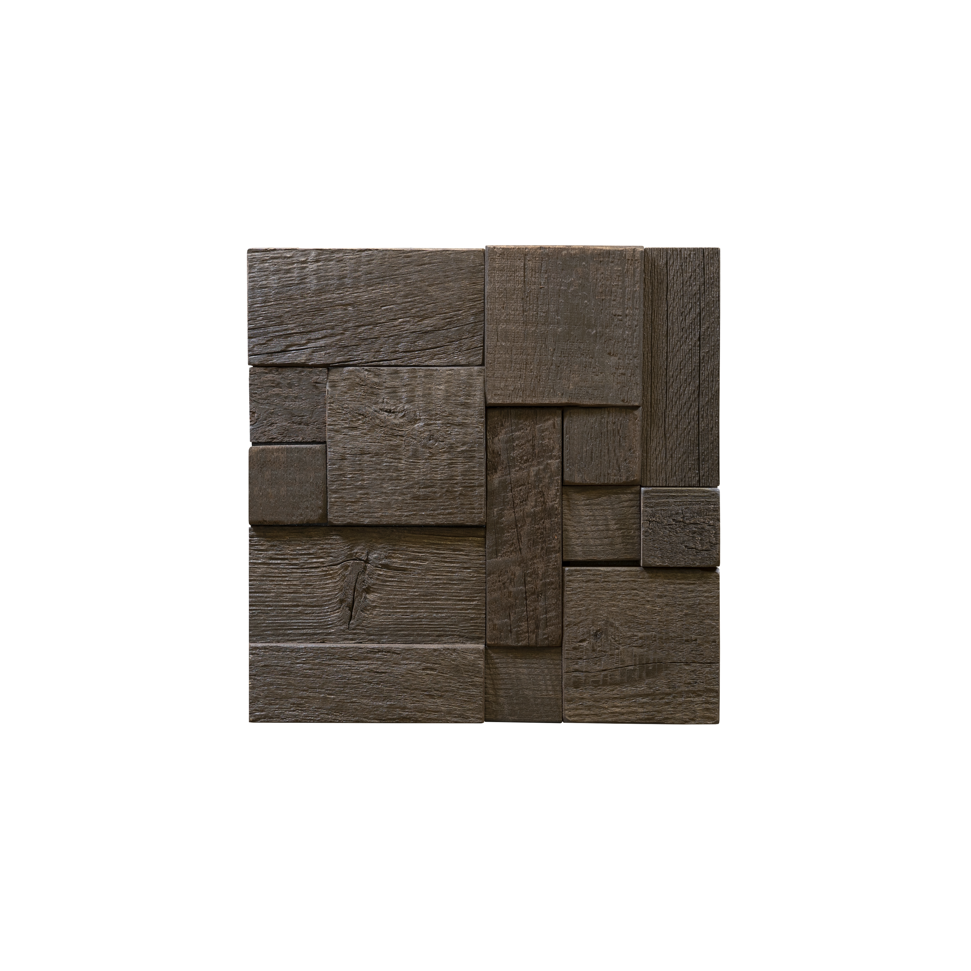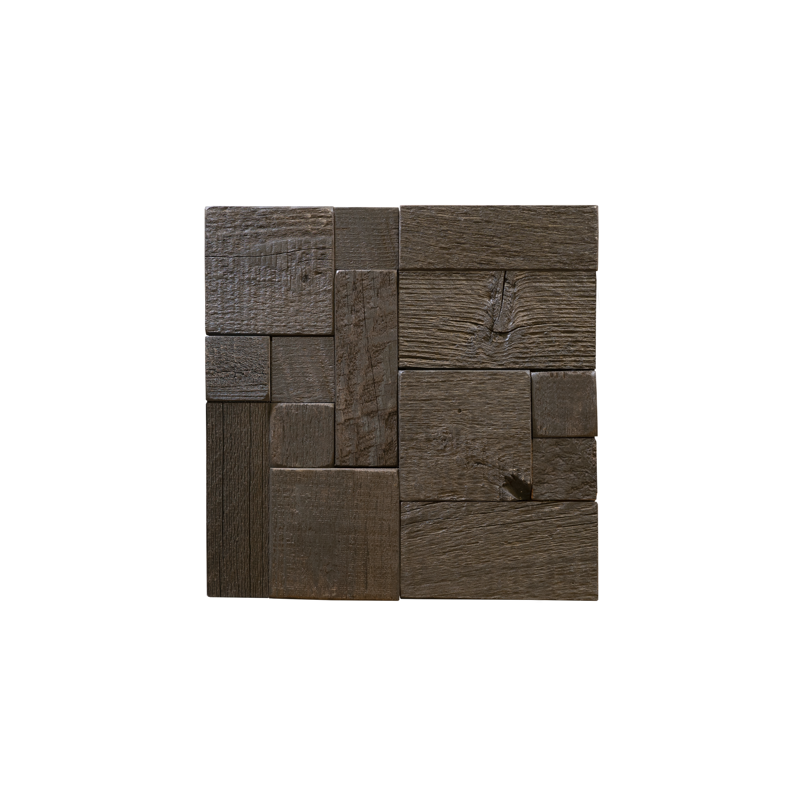 A rich brown stain applied to our natural, reclaimed wood creates a deep and varied brown palette that is both modern and tactile. Made from real reclaimed American Eastern White Pine Blocks, Woodwöl Gunstock Ashlar 2 mosaic wood wall tiles are a simple and beautiful way to bring a rich, earthy element to your design.