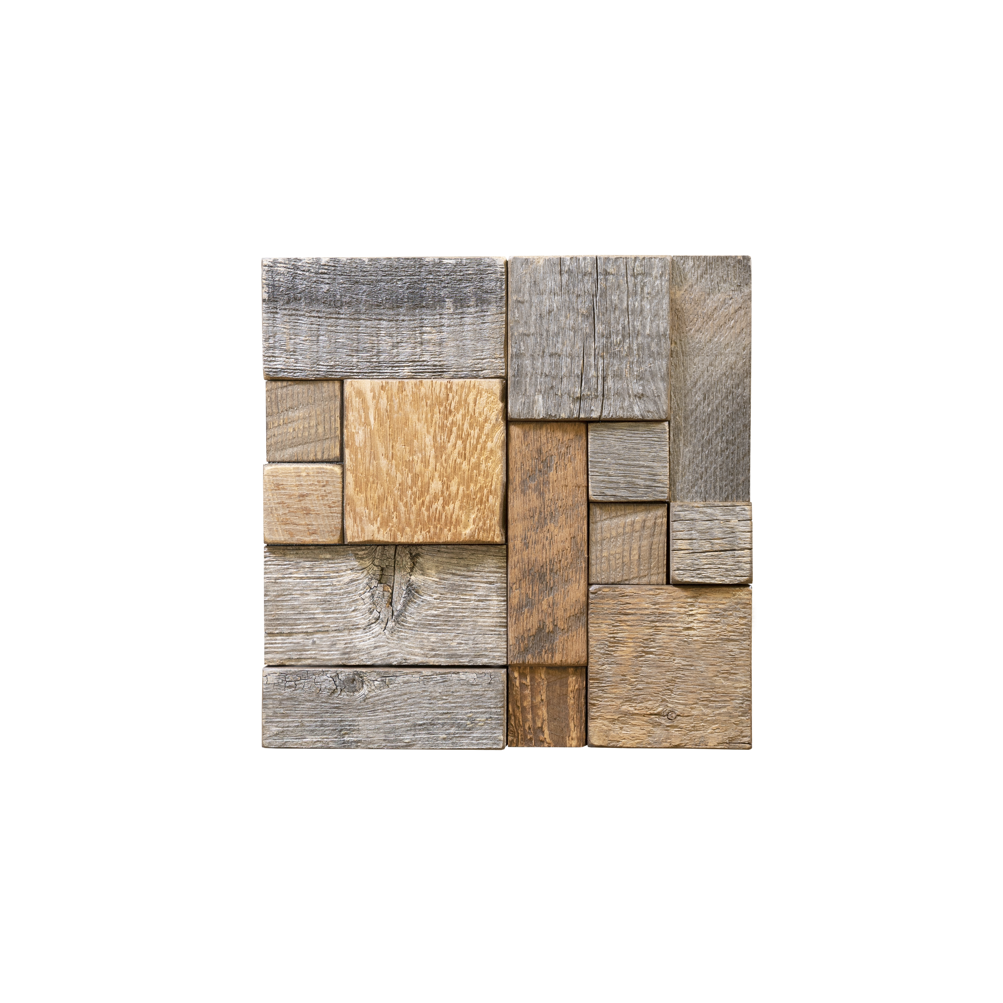 Hand-made in Michigan using authentic reclaimed wood, these easy-to-install one square foot interlocking mosaic wood tile sheets are an exciting new way to incorporate nature into your design.