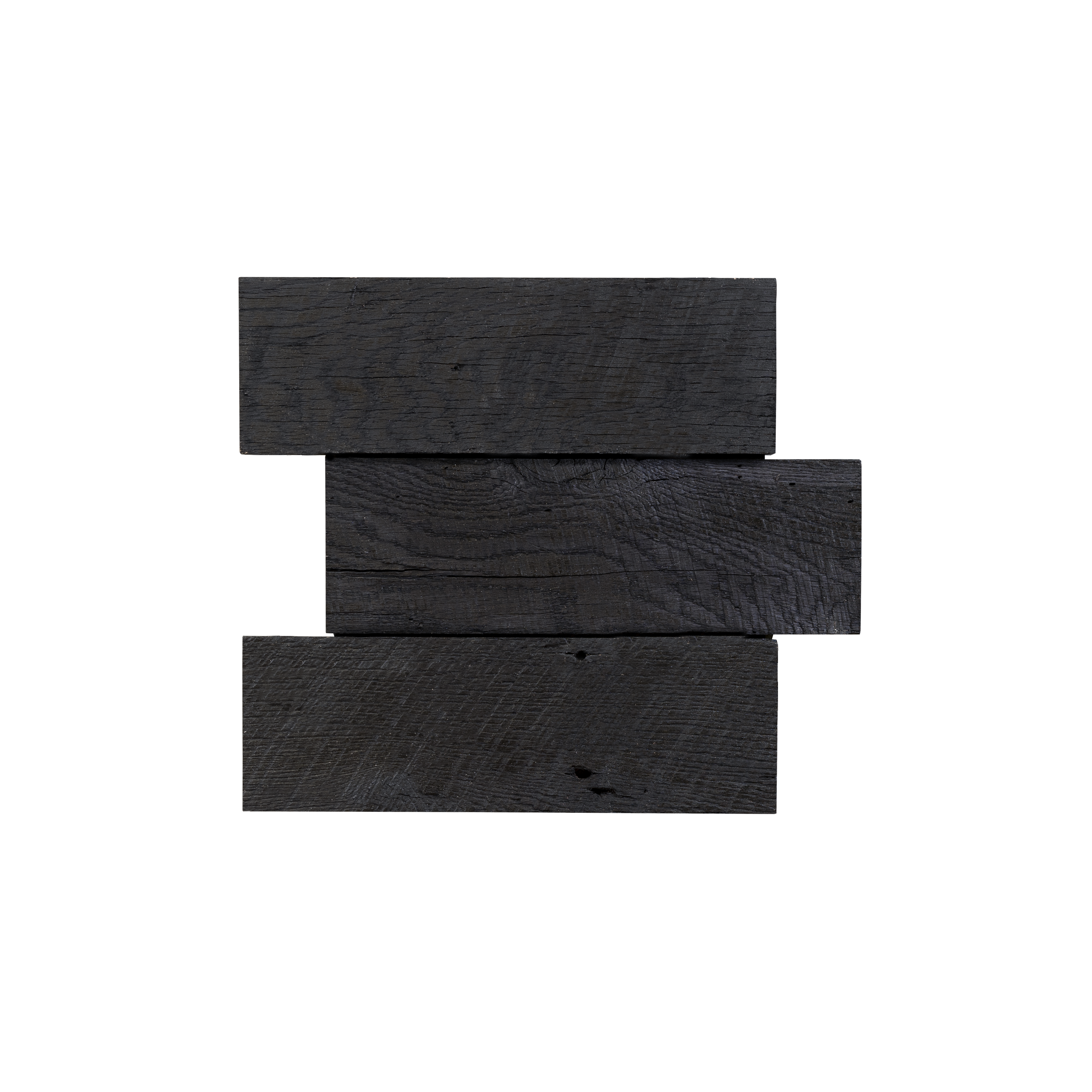 Made from real reclaimed American Eastern White Pine Blocks, Woodwöl Ember Bond mosaic wood wall tiles are a simple and beautiful way to bring a Japanese shou sugi ban look into your design. The dark charred wood look is beautiful, striking and sophisticated.